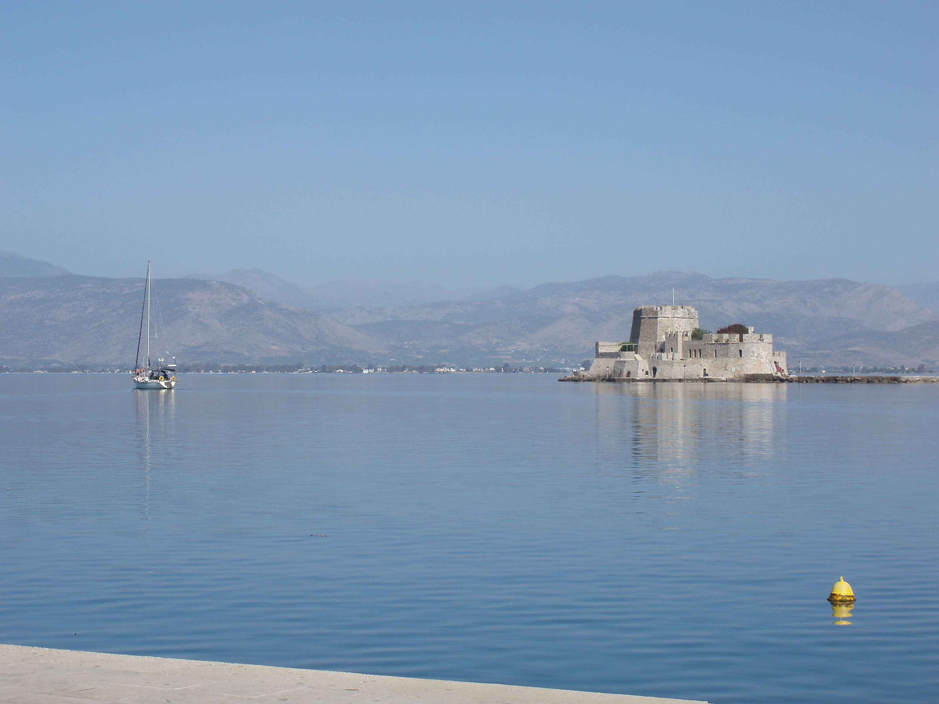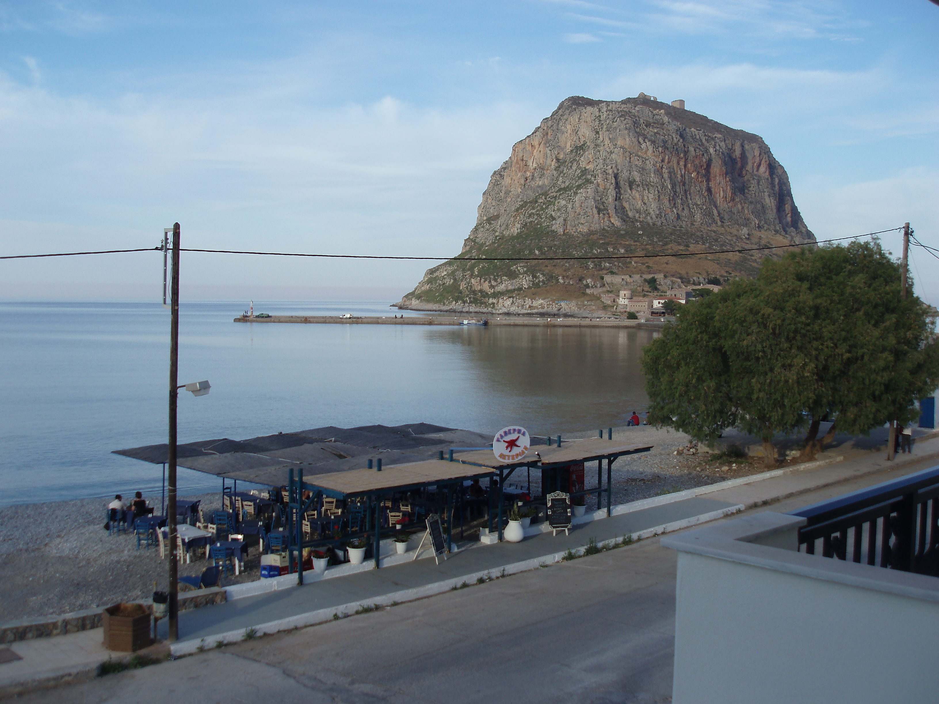 In 2010 we decided to return to Greece and explore the Peloponnese peninsula. We married in Greece a few years earlier and love exploring this beautiful country. After leaving Athens airport with our rental car we stayed the first night near Corinth. Not an auspicious start with a rubbish meal and horrible cocktails. Happily breakfast was delicious and afterwards we went to look at the Corinth Canal which was very impressive. Then we went on to Mycenae to look at the ruins, museum and the famous Lion Gate. Then a 3 and a half hour drive to Monemvasia on the coast. We stayed at the Hotel Filoxenia for two nights. What a beautiful spot. We were on the other side of the causeway and walked over the next morning to the old part of Monemvasia which has no cars. We climbed to the top of the hill and to the citadel and replica Church of Sophia modelled on the one in Istanbul. If you do visit Monemvasia, climb the hill the views are magnificent.