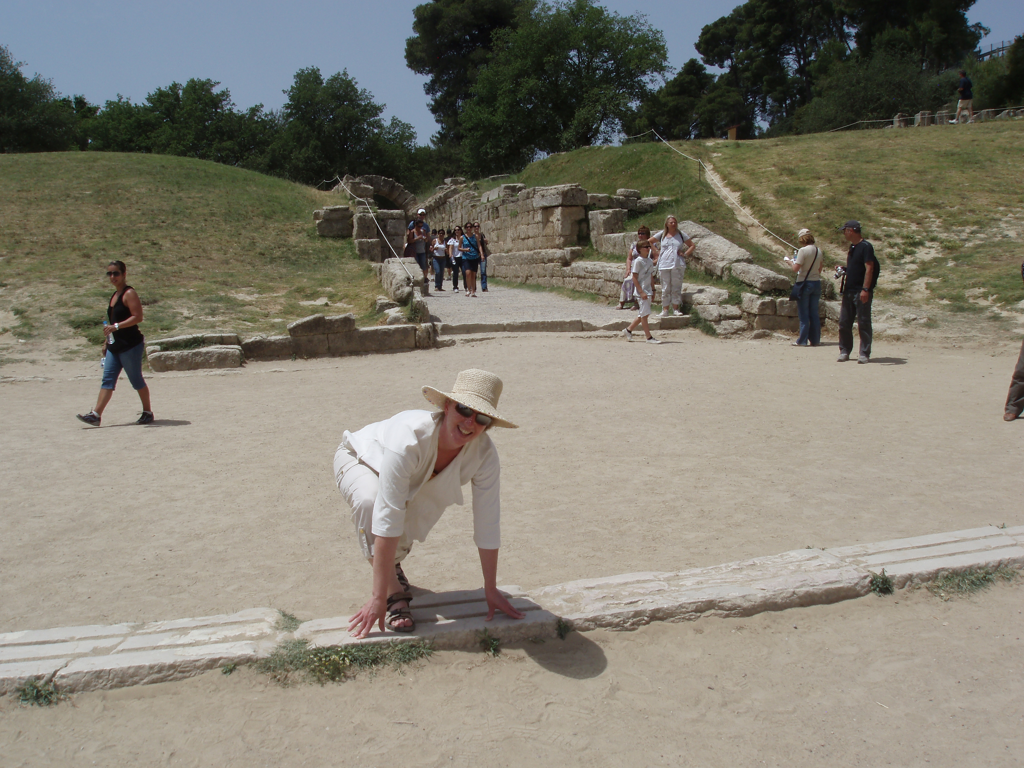 I even ran the original Olympic mile, which you see me crouching down at the start line – I even managed to beat a few guys who ran with me, but puffed out part way down! This was a fantastic trip, to say nothing about how the direction signs work, was truly guess work. At the time, the roads were in excellent shape, as Greece had a lot of money put in from the EU and it was excellent driving. Just could work on the road signs. At one point, we ended at a beautiful paved road that lead to a field, which then had a sign saying to Athens, if we wanted to do a bit of off roading – Greek joke I think. The mainland of Greece is often over looked for the islands, but it really was beautiful and so rich with history. I am so glad we took the time and got advice from our Greek friend, Toli, on where to go and what to do.