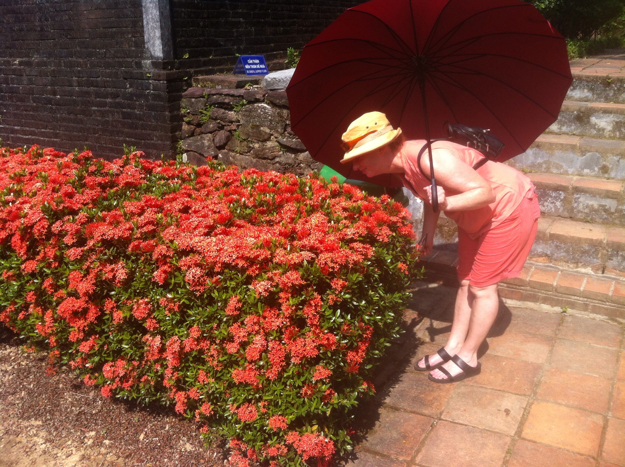 - Smelling the flowers