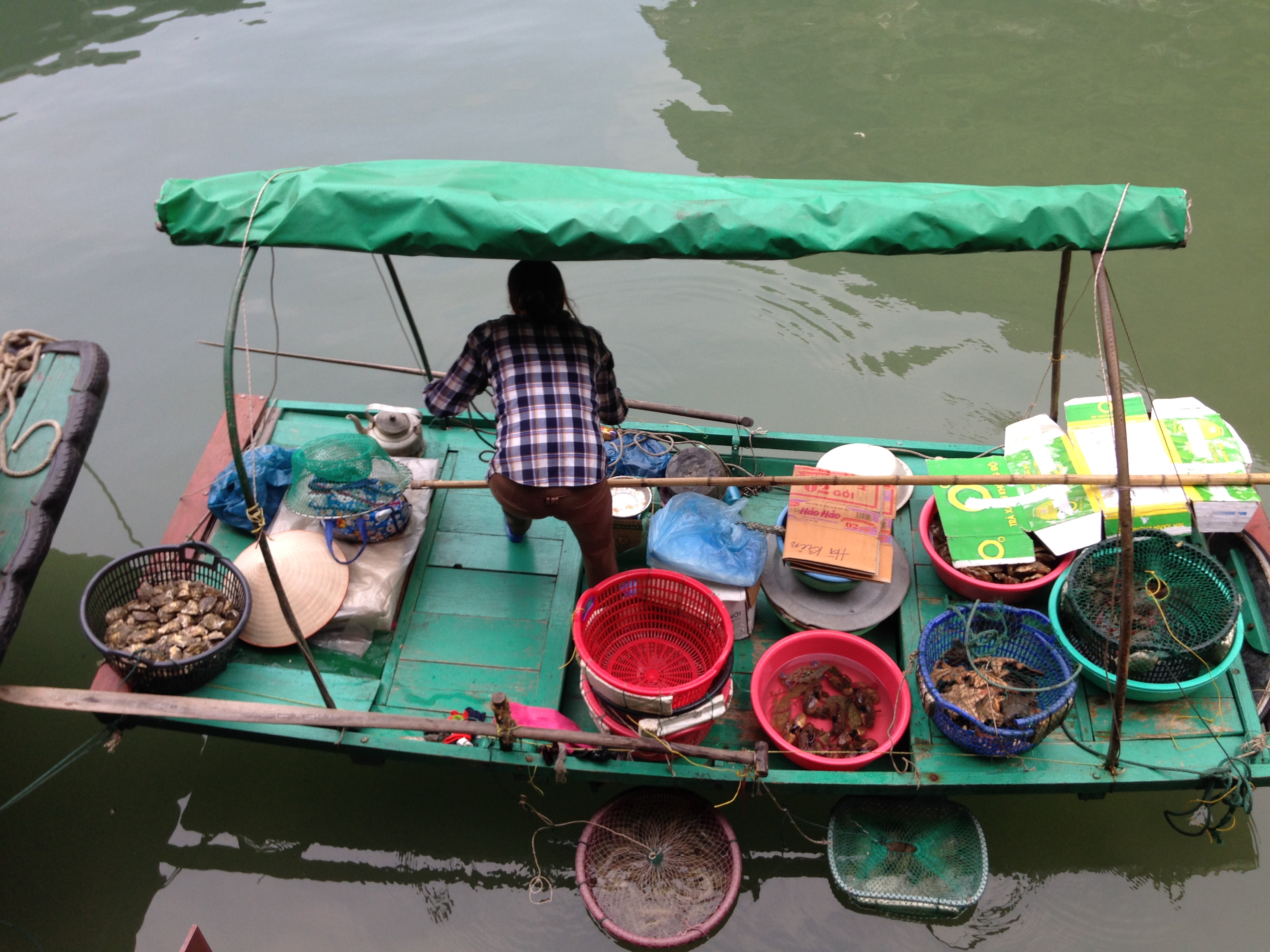 We decided to hit the ground running and book a trip to Halong Bay as soon as possible. Before we came to Hanoi we had done some research and decided to spend a bit more that we normally would. This was to avoid some of the horror stories we had read on trip advisor about Halong cruises. Ms Rose a travel organiser at our hotel did all the legwork. We chose Viola Cruises. Excellent choice. The boat was new with 16 cabins. They used a modern mini bus for the four-hour trip to Halong Bay which was still uncomfortable and thank goodness for the half hour break on the way there. I booked the honeymoon cabin it was our 9th wedding anniversary. We got Room 205 with a great balcony to sip some wine and watch the mountains as we glided past them. The food, aside from the first lunch was excellent and there was plenty of it. We loved everything, the caves, floating village, swimming, pearl farm and kayaking.