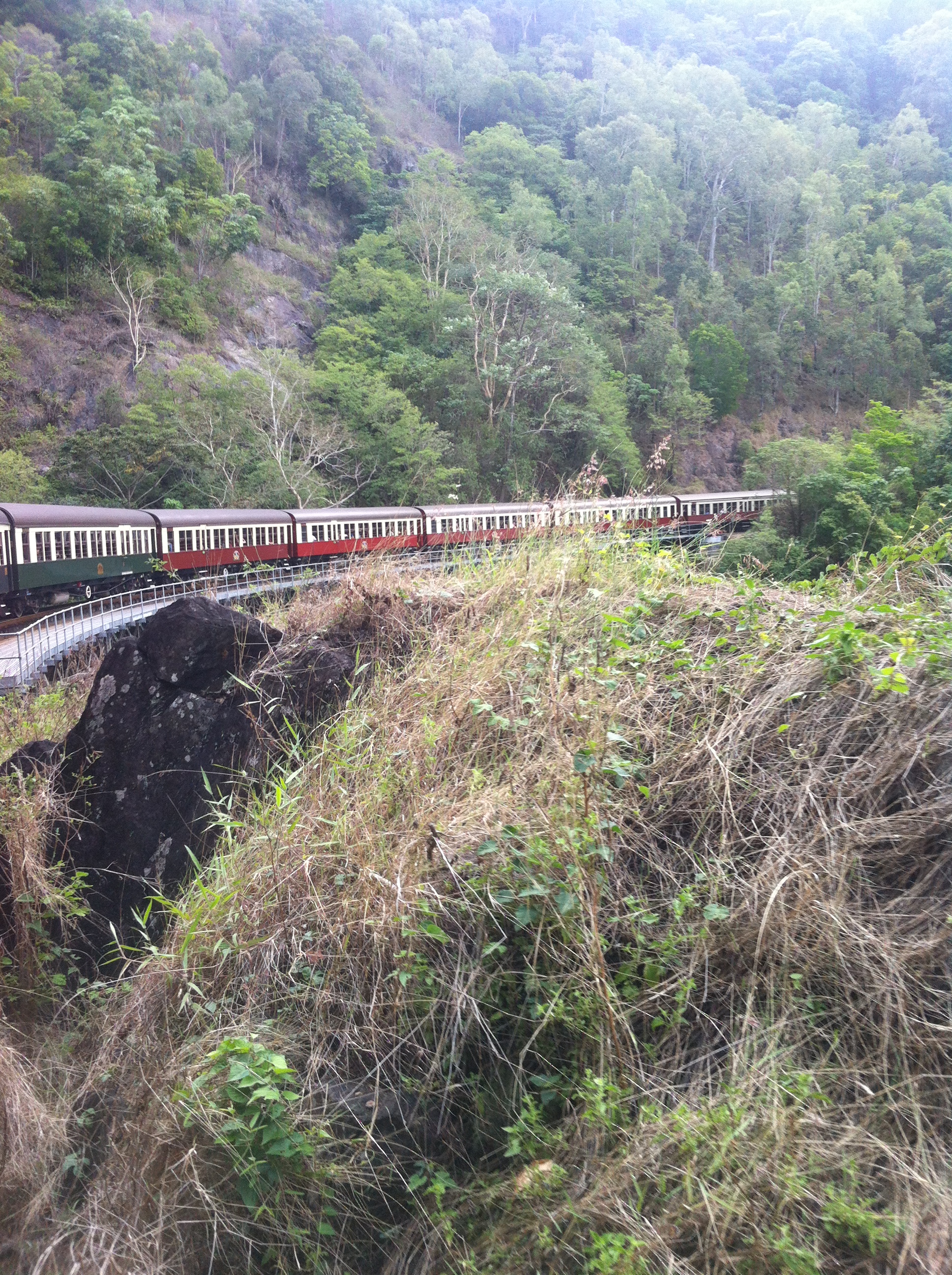 We visited Australia last year and stayed several days at Port Douglas. On one day we decided to do a day trip on the Kuranda Steam Railway near Cairns. We booked a day tour with a company as we were without a car. The tour was fine and it is a full day with a lovely drive back down to Cairns with a few photo stops along the way. The van dropped several people off at the skytrain terminal for a trip over a rainforest canopy up to Kuranda. We decided not to as I was not interested having done several canopy type trips before and was more interested in the steam train. We went up to Kuranda with the tour guide who met the other people from the Skytrain and takes them to Kuranda and then to the train station for the trip down to Cairns. We spent more time wandering around the small town which was lovely. We also visited a Butterfly Sanctuary which was interesting as they showed the work behind the scenes. We did not have time to really visit the other tourist attractions around Kuranda. There are not many quality places for food in Kuranda and we finally ended up at the place the tour guide recommended. Bad mistake. I had deep-fried seafood and my wife a chicken salad. I can safely say I have never seen my wife so sick for 24 hours. The only good news is that she was well enough to do the Great Barrier Reef trip a two days later albeit a bit weak.