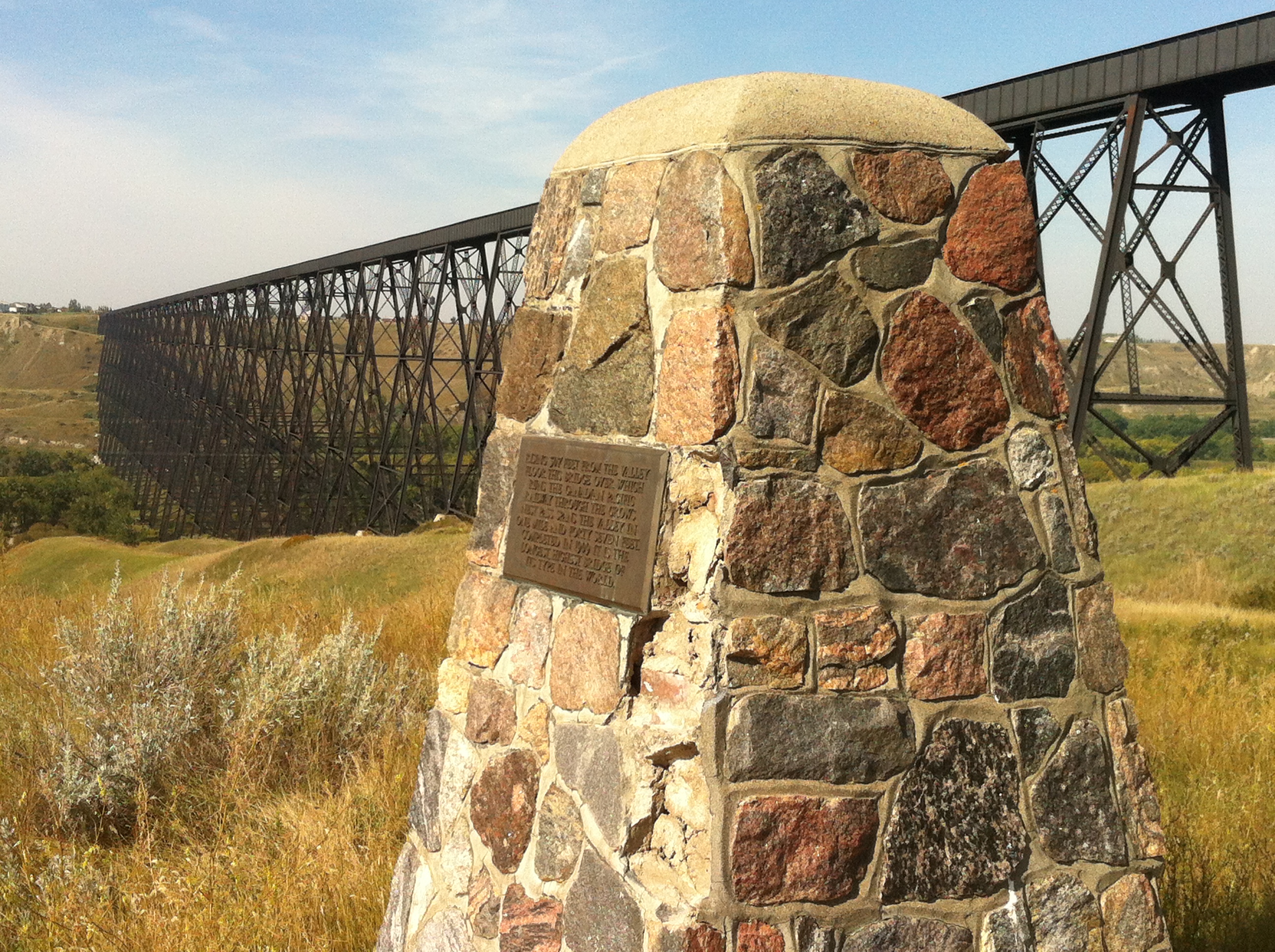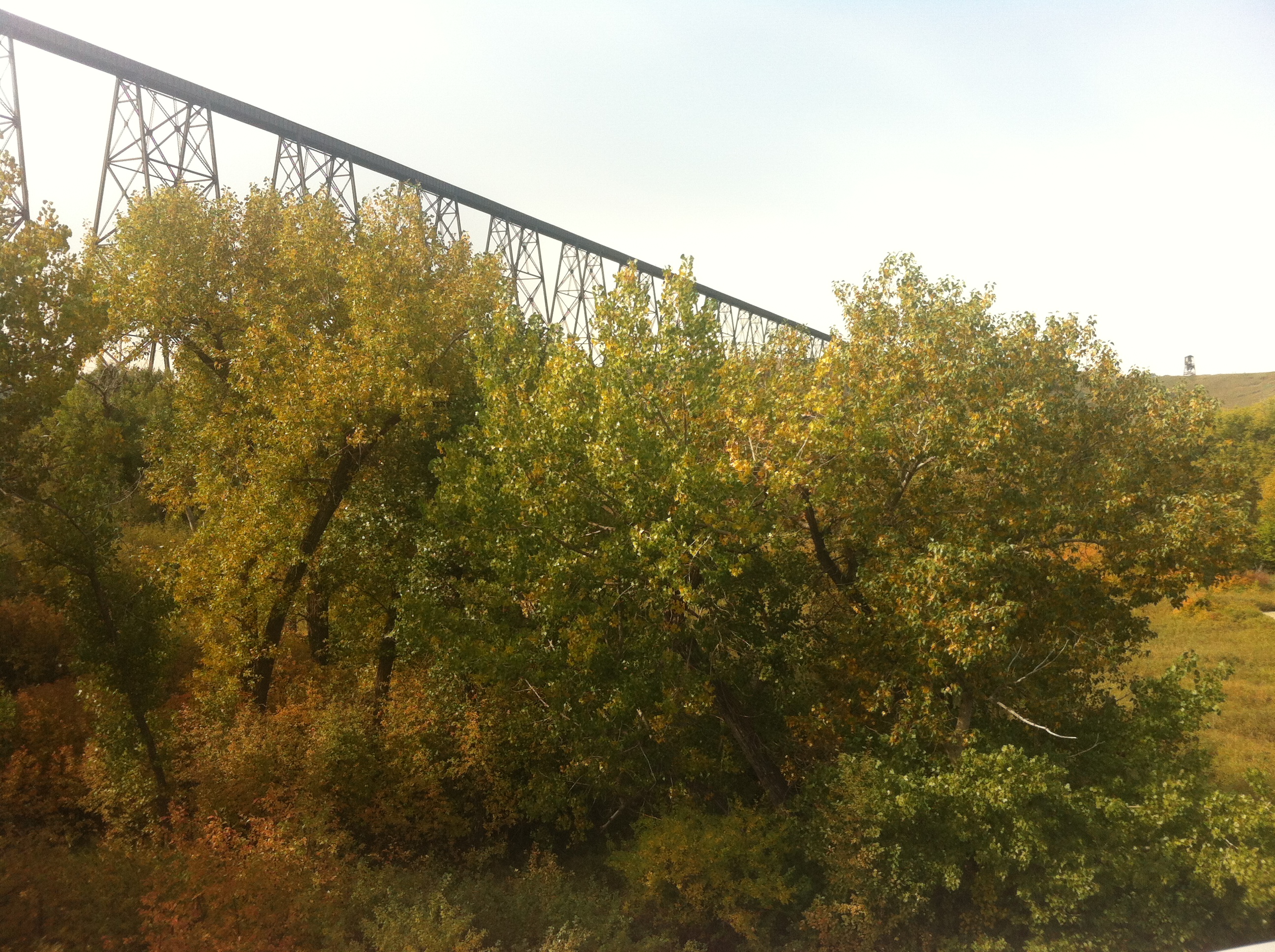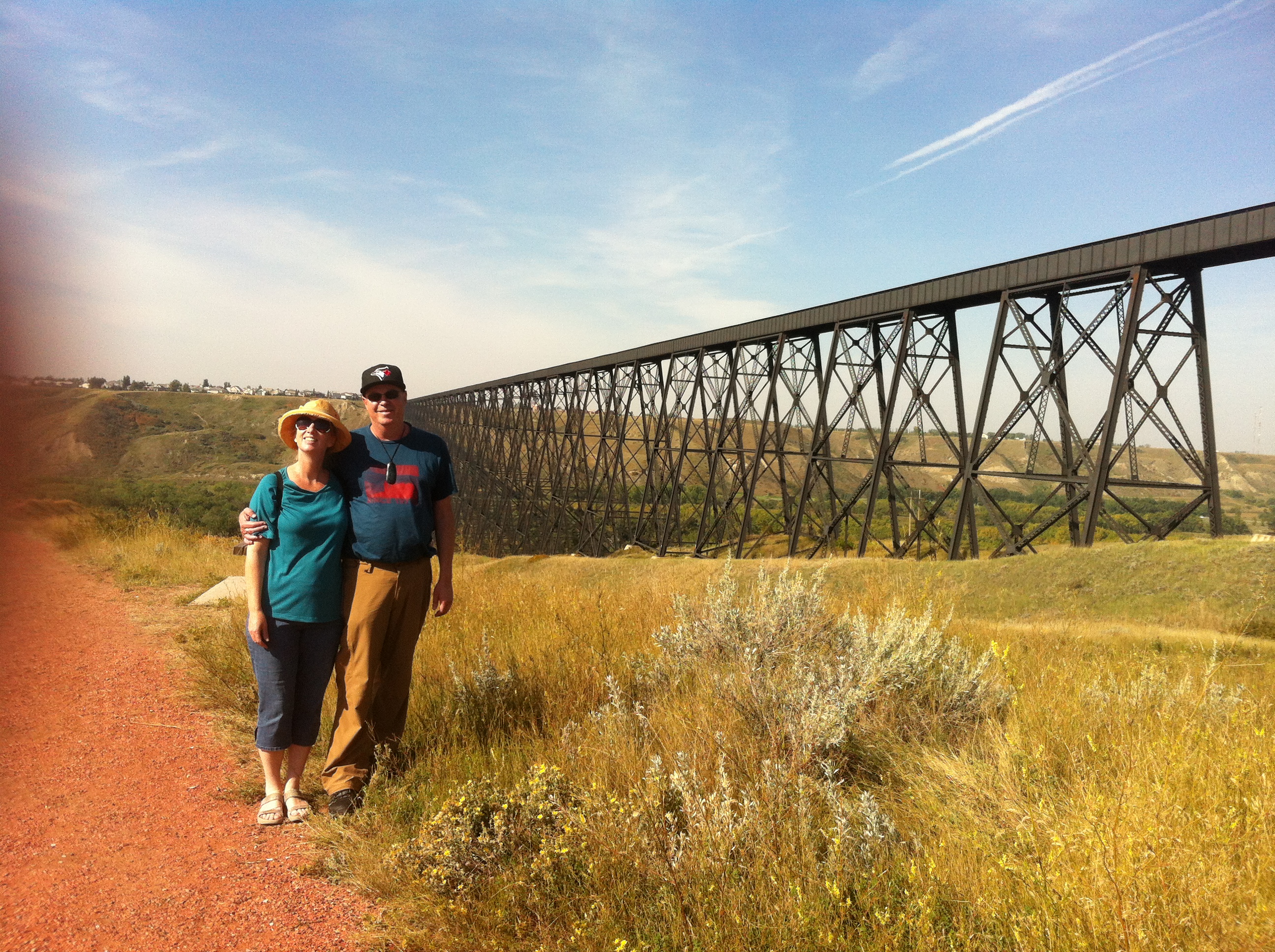 Our mechanical problem meant an unexpected stay in sunny Lethbridge. The city is one of the warmest in Canada and receives 2400 hours of sunshine a year. Due to warm winds or Chinooks, Lethbridge, as many parts of Southern Alberta, can have quite mild winters. There, also, is plenty to do in Lethbridge. The city is home to the longest and highest trestle bridge of its kind in the world. The bridge was built in 1909 and is 96 metres high and 1.6 km long. Under the bridge is the Lethbridge river valley covering an area of 1,600 hectares of different parks and reserves. There, also, are the Helen Schuler Nature Centre, Galt Museum and Fort Whoop-Up.
