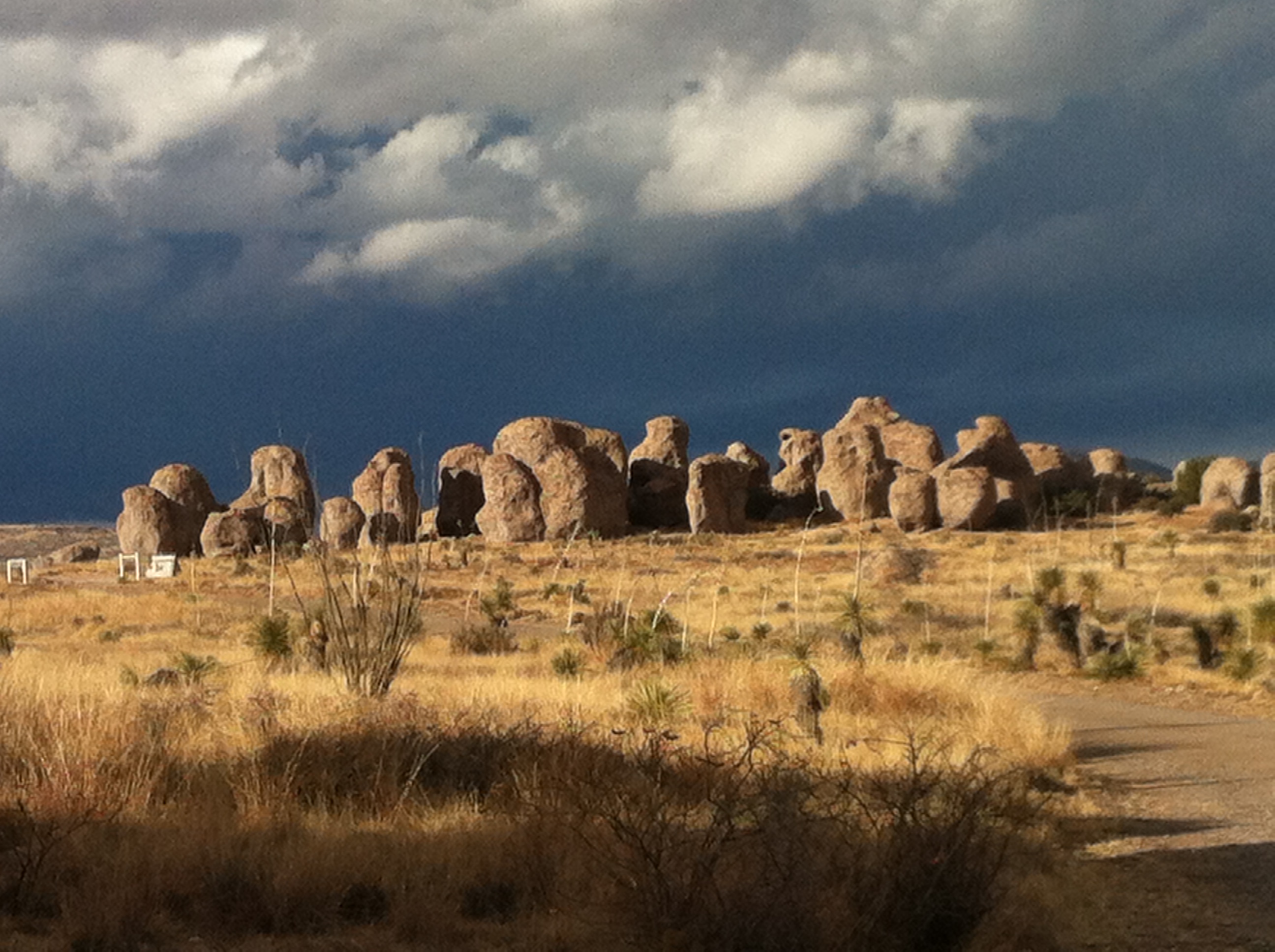 If you ever are driving down the I-10 take the short detour from Deming of around 30 miles and visit the park. It is not a large park and is breathtakingly beautiful with its rocky landscape. Even better if you are able there are places to camp which if we had known we would have done. The City of Rocks State Park has a visitor centre, toilets and places to camp in among the rocks. I wish we could have camped and looked up at the stars. There is a gravel road to drive around the rocks and lots of tracks criss crossing it for walkers. It cost $5 to visit the park per vehicle.