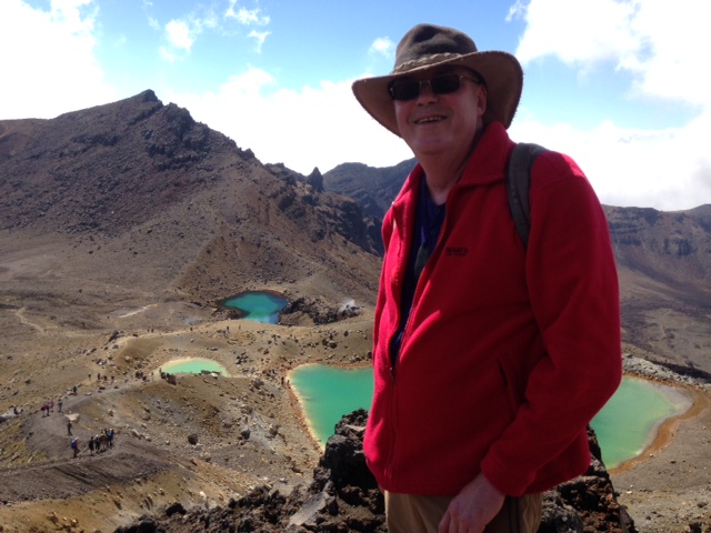 - Emerald lakes below